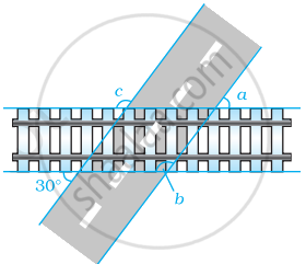 A road crosses a railway line at an angle of 30° as shown in the following. Find the values of a, b and c.