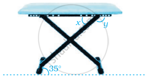 The legs of a stool make an angle of 35° with the floor as shown in the following figure. Find the angles x and y.