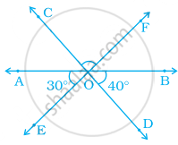 Three lines AB, CD and EF intersect each other at O. If ∠AOE = 30° and ∠DOB = 40° (Figure), find ∠COF.
