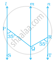 In the following figure, l || m || n. ∠QPS = 35° and ∠QRT = 55°. Find ∠PQR.