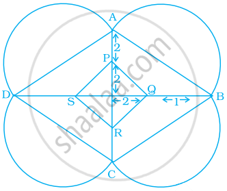 A Rangoli has been drawn on a flor of a house. ABCD and PQRS both are in the shape of a rhombus. Find the radius of semicircle drawn on each side of rhombus ABCD.