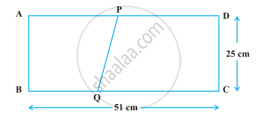 एक आयत ABCD की विमाएँ 51 cm × 25 cm हैं। इस आयत में से एक समलंब PQCD काटा जाता है, जिसकी समांतर भुजाएँ QC और PD हैं और ये 9 : 8 के अनुपात में हैं, जैसा कि निम्नलिखित आकृति में दर्शाया गया है। यदि समलंब PQCD का क्षेत्रफल आयत के क्षेत्रफल का `5/6` भाग है, तो QC और PD की लंबाइयाँ ज्ञात कीजिए।