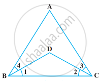 निम्नलिखित आकृति में, ∠ABC = ∠ACB और ∠3 = ∠4 है। दर्शाइए कि ∠1 = ∠2 है।