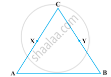 निम्नलिखित आकृति में, X और Y क्रमश : AC और BC के मध्य-बिंदु हैं तथा AX = CY है। दर्शाइए कि AC = BC है।
