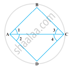 निम्नलिखित आकृति में, ∠1 = ∠3 और ∠2 = ∠4 है। दर्शाइए कि ∠A = ∠C है।