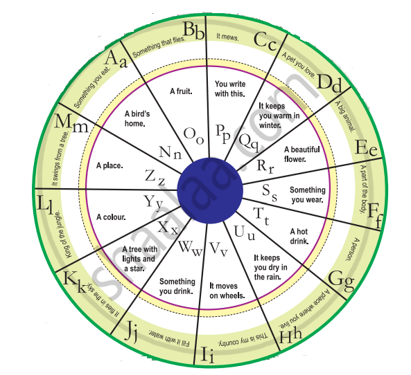 When you finish reciting the poem, stop moving your finger. Open your eyes, see which letter you stop at. Use the clues to write the word beginning with the letter that you find.
