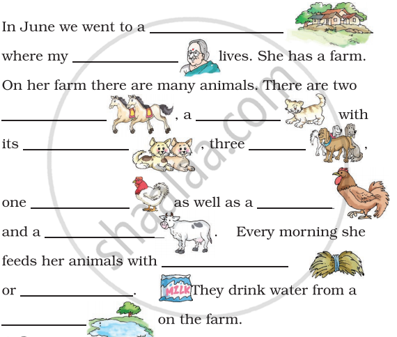 | hay | pond | grandmother | cow | cock | hen |