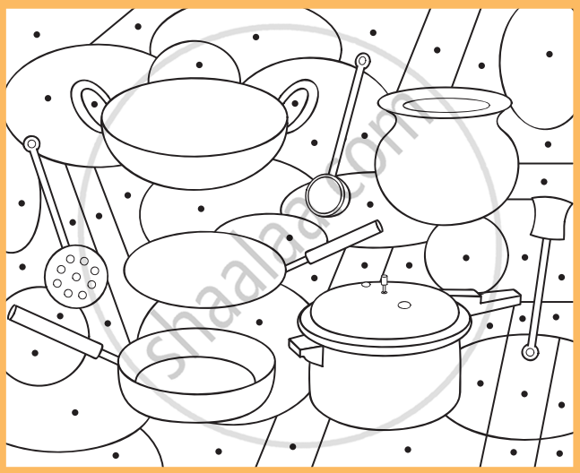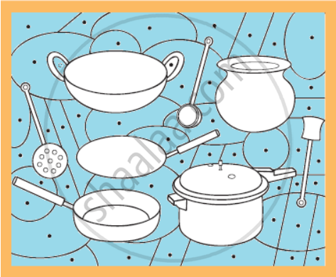 तुमने चित्र में खाना पकाने के कई बर्तन ढूँढ लिए होंगे। क्या तुम्हारे घर में इनके अलावा कुछ अन्य बर्तनों का भी इस्तेमाल होता है? कैसे-से?