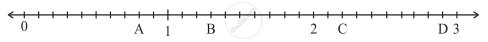 दी हुई संख्या रेखा पर स्थित A, B, C, D बिंदुओं के लिए दशमलव संख्या लिखिए: