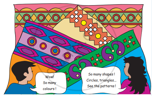 Look at your cloths, your mother’s saris/shawls, rugs and mats. Can you identify some patterns? Draw them in your notebook.