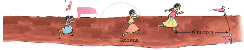 This is a 100 metre race for girls. Arundhati is nearest the finishing line. She is about 6 metres from it.