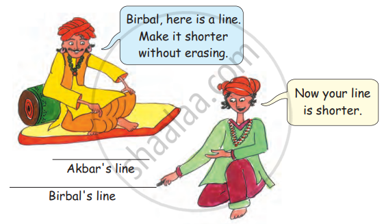Look at the picture and explain how Birbal made Akbar's line shorter.