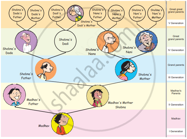 Madhav got confused. He couldn’t imagine his mother’s grandmother’s mother! So, Madhav’s mother made a family tree for him —