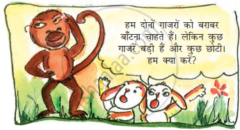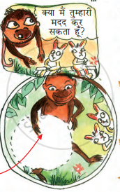 अंदाज़ा लगाओ कि छोटू बंदर चिक्की और मिक्की की मदद के लिए क्या लाया। बंदर के हाथ में उस चीज़ की तस्वीर बनाओ।