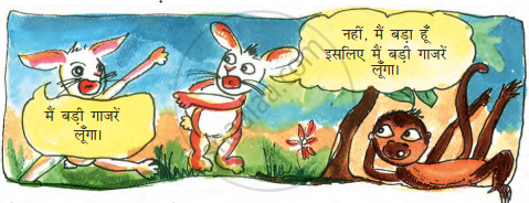 चिक्की और मिक्की खरगोश को एक थैला मिला।उसके अंदर गाजरें थी।