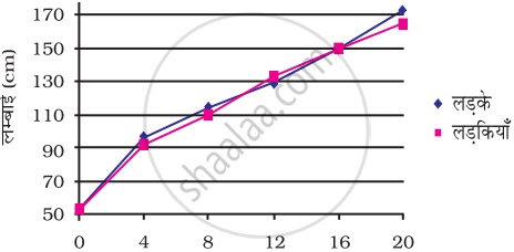 नीचे दी गई सारणी में आयु वृद्धि के अनुपात में लड़कों एवं लड़कियों की अनुमानित लंबाई के आँकड़े दर्शाए गए है। लड़के एवं लड़कियों दोनों की लंबाई एवं आयु को प्रदर्शित करते हुए एक ही ग्राफ कागज पर ग्राफ खींचिए। उस ग्राफ से आप क्या निष्कर्ष निकल सकते है?