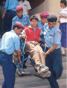 Look at the photograph and think about the boy who is being carried down the stairs. Do you think the above law is being implemented in his case? What needs to be done to make the building more accessible for him? How would his be carried down the stairs affect his dignity as well as his safety?