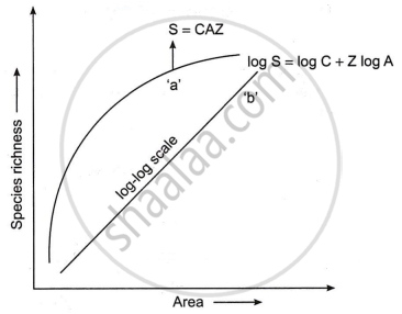 The following graph shows the species-area relationship. Answer the following questions as directed.