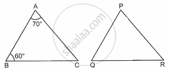 In the given figure, ΔАВС ~ ΔRPQ, then ∠Q is equal to ______.