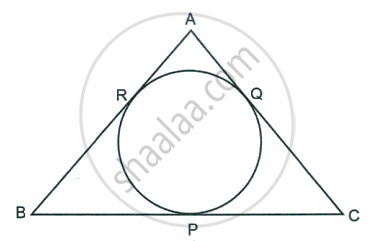 A circle touches the side BC of a ΔABC at a point P and touches AB and AC when produced at Q and R respectively. As shown in the figure that AQ = `1/2` (Perimeter of ΔABC).