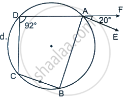 In the given figure, ABCD is a cyclic quadrilateral. AE is drawn parallel to CB and DA is produced. If ∠ADC = 92°, ∠FAE = 20°, determine ∠BCD.