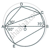In Fig. AB is a diameter of a circle, with centre O. If ∠ABC = 70°, ∠CAD = 30° and ∠BAE = 60°, find ∠BAC, ∠ACD and ∠AВЕ.