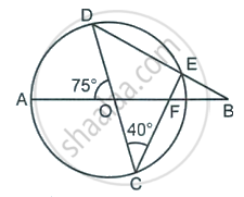 In the given figure, AB and CD line segments pass through the centre O of the circle. If ∠OCE = 40°, ∠AOD = 75°, find ∠CDE and ∠OBE.