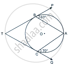In the given figure, TBP and TCQ are tangents to the circle whose centre is O. Also, ∠PBA = 60° and ∠ACQ =70°. Determine ∠BAC and ∠BТС.