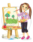 She coloured the picture ____.