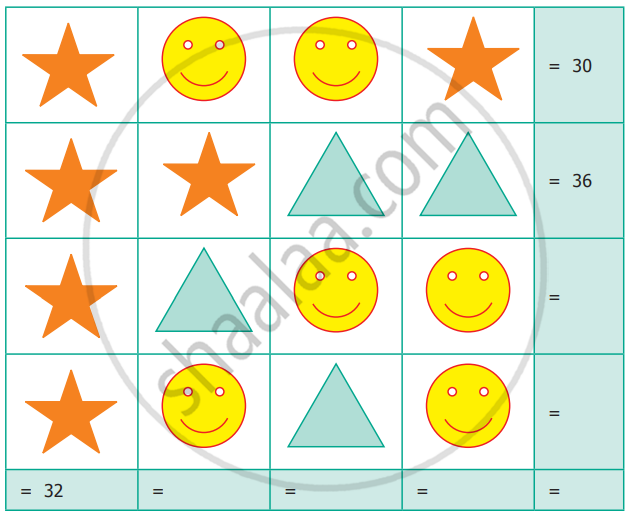 Identify the value of the shapes and figure in the table given below and verify their addition horizontally and vertically.