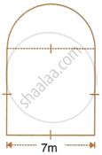 The cross-section of a tunnel is a square of side 7 m surmounted by a semi-circle as shown in the adjoining figure. The tunnel is 80 m long.