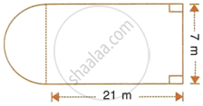 In the following diagram a rectangular platform with a semi-circular end on one side is 22 metres long from one end to the other end. If the length of the half circumference is 11 metres, find the cost of constructing the platform, 1.5 metres high at the rate of Rs. 4 per cubic metres.