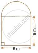 The cross-section of a railway tunnel is a rectangle 6 m broad and 8 m high surmounted by a semi-circle as shown in the figure. The tunnel is 35 m long. Find the cost of plastering the internal surface of the tunnel (excluding the floor) at the rate of Rs. 2.25 per m2.