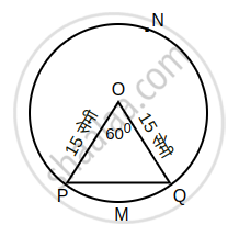 15 सेमी त्रिज्यावाले किसी वृत्त में जीवा PQ वृत्त के केंद्र से 60° का कोण बनाती है। उस जीवा से बनने वाले दीर्घ वृत्तखंड और लघु वृत्तखंड का क्षेत्रफल ज्ञात कीजिए। (π = 3.14, `sqrt3` = 1.73)