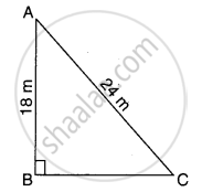 एक ऊर्ध्वाधर खम्भा AB = 18 m है जो सिरे A से एक तार AC = 24 m से एक खूटे C से जुड़ा है। खम्भे के आधार B से खूटे C की दूरी BC है।