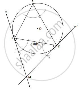 - X व Y हे शिरोबिंदू आणि जीवा XY ही एक बाजू वापरून ∠XAY च्या मापाचे ∠XYM व ∠YXM काढा.
