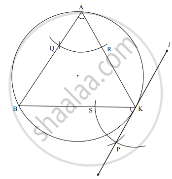 - A हे केंद्र घेऊन आणि कंपासमध्ये सोयीस्कर अंतर घेऊन ∠BAK च्या भुजांना बिंदू Q आणि R ला छेदणारा कंस काढा.