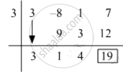 3x3 − 8x2 + x + 7 या बहुपदीला x − 3 या बहुपदीने संश्लेषक पद्धतीने भागा व बाकी काढा.