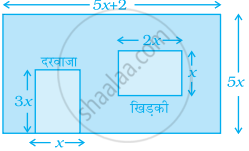 दाईं तरफ दी हुई आकृति किसी कमरे की दीवार की विमाएँ दर्शाती हैं जिसमें एक खिड़की और दरवाज़ा है। इस पर पेंट किये जाने वाले भाग के क्षेत्रफल के लिए एक बीजीय व्यंजक लिखिए।