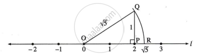बिंदु R, संख्या रेखा पर संख्या `sqrt 5` दर्शाती है।