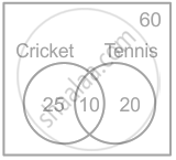 60 विद्यार्थियों की एक कक्षा में, 25 विद्यार्थी क्रिकेट और 20 विद्यार्थी टेनिस खेलते हैं तथा 10 विद्यार्थी दोनों ही खेल खेलते हैं। उन विद्यार्थियों की संख्या ज्ञात कीजिए जो इन दोनों में से कोई भी खेल नहीं खेलते हैं।
