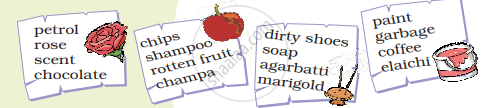 Using a red pencil, choose and circle the things whose smell you like. Now with a blue pencil circle the things whose smell you do not like. Make five sentences like this