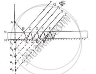 (d) A thick plane mirror produces several faint images in addition to a prominent one. Draw a ray diagram showing how reflection and refraction produce all these images.