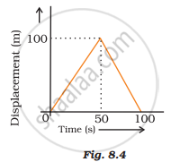 A girl walks along a straight path to drop a letter in the letterbox and comes back to her initial position. Her displacement–time graph is shown in Fig.8.4. Plot a velocity-time graph for the same.
