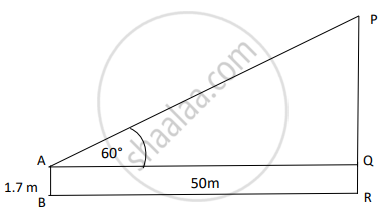 In ∆PQR, tan 60° = `(PQ)/50` ⇒ PQ = `50sqrt(3)` m