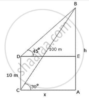A boy is standing on the ground and flying a kite with 100m of sting at an elevation of 30°. Another boy is standing on the roof of a 10m high building and is flying his kite at an elevation of 45°. Both the boys are on opposite sides of both the kites. Find the length of the string that the second boy must have so that the two kites meet.