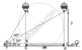 A boy whose eye level is 1.35 m from the ground, spots a balloon moving with the wind in a horizontal line at some height from the ground. The angle of elevation of the balloon from the eyes of the boy at an instant is 60°. After 12 seconds, the angle of elevation reduces to 30°. If the speed of the wind is 3m/s then find the height of the balloon from the ground. `("Use" sqrt3= 1.73)`