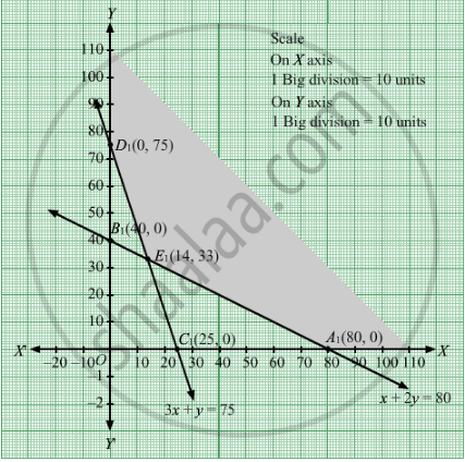 The corner points are D1(0, 75), E1(14, 33) and A1(80, 0).