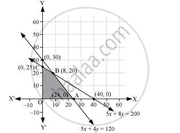 `10x+8y<=240` i.e.,`5x+4y<=120`