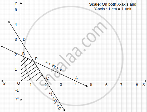 First we draw the lines AB and CD whose equations are x + 2y = 4 and 3x + 2y = 6 respectively.